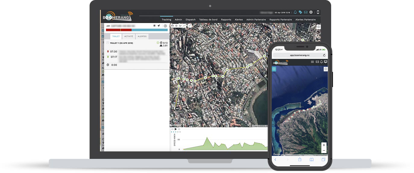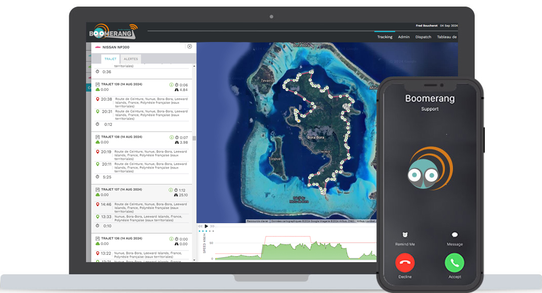Utilisez le système de géolocalisation Boomerang pour suivre vos véhicules en temps réel, à tout moment, depuis n’importe quel appareil connecté à internet. Aucun logiciel supplémentaire n’est à installer, tout est accessible depuis internet.
